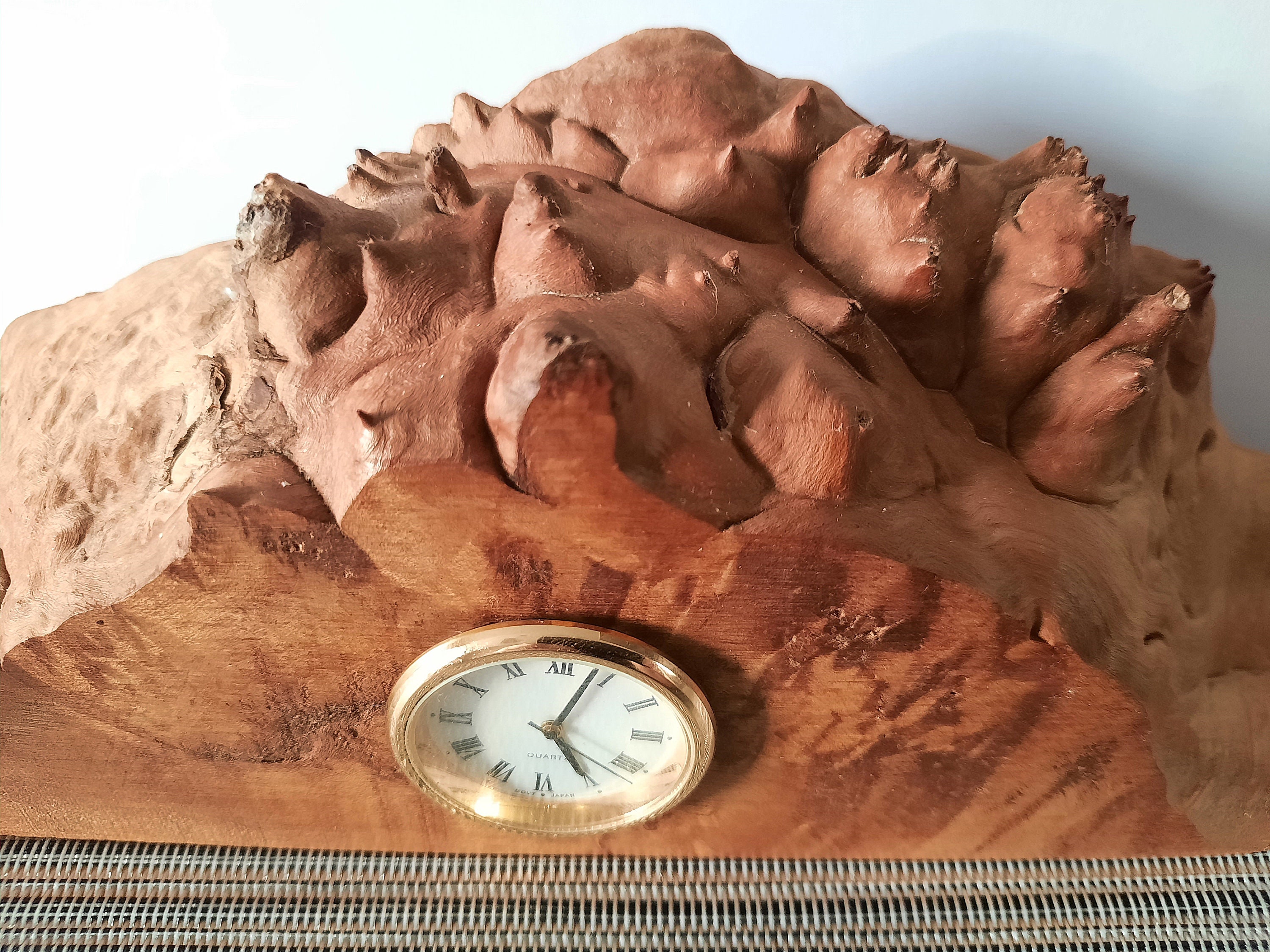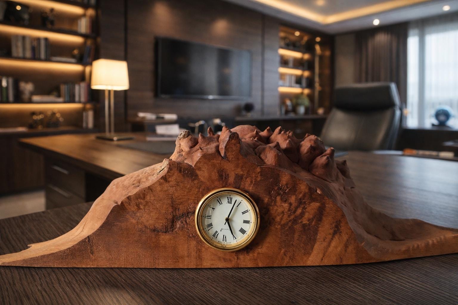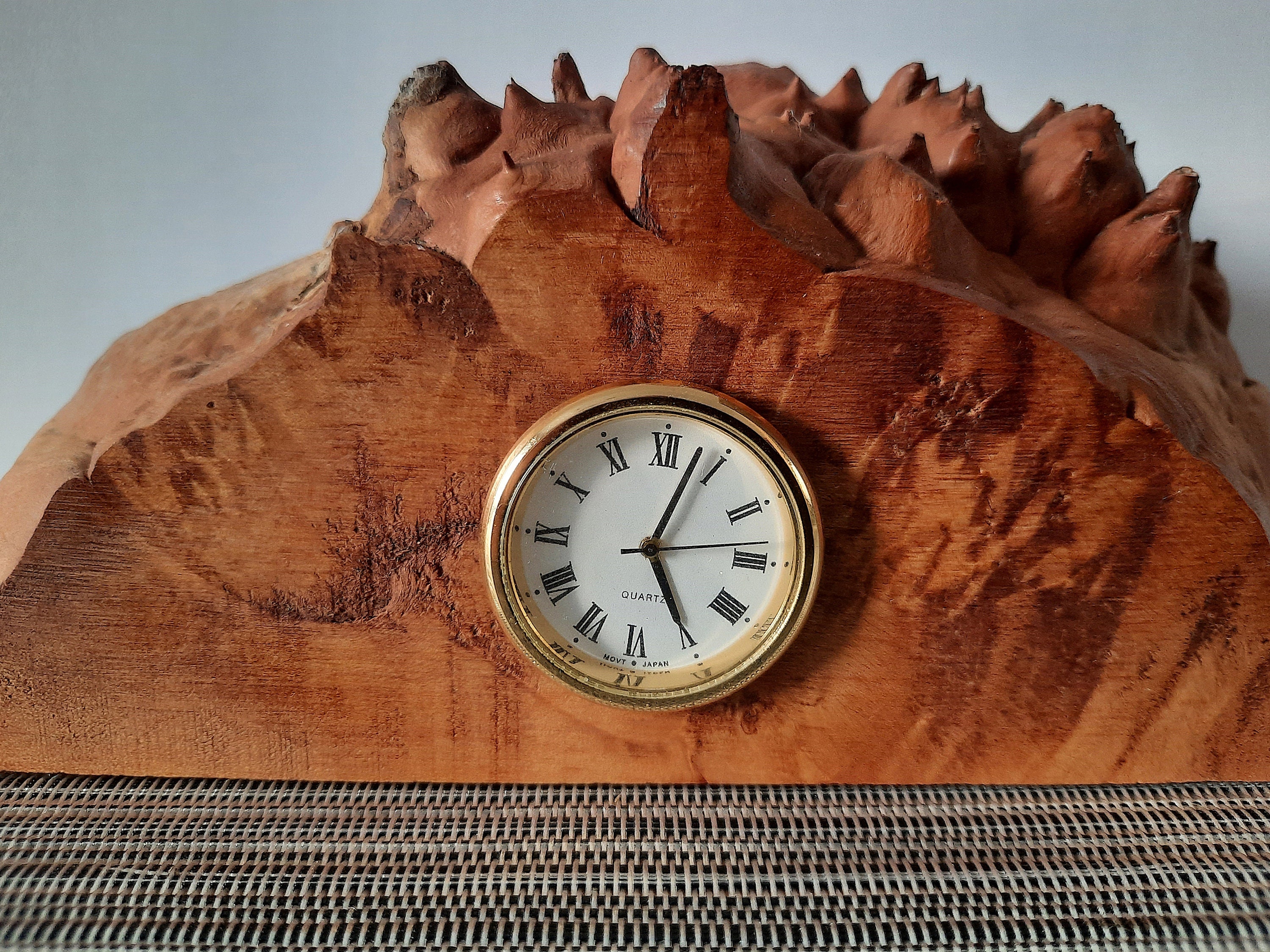 Mantel clock/table clock made of precious wood - a handcrafted, unique piece ideal for decoration in hallways, offices, living rooms, and dining rooms; makes an ideal gift for birthdays, Christmas, autumn, visits, or housewarmings.