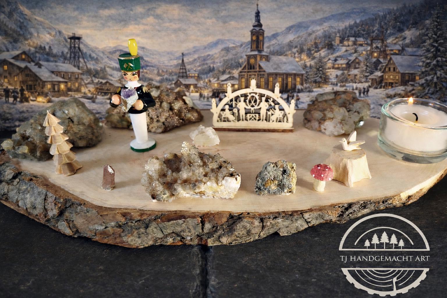 Christmas/Winter decoration with forest scene and carved figures / Ore Mountains / Wooden gift / Unique/Handmade/One-of-a-kind/Elegant