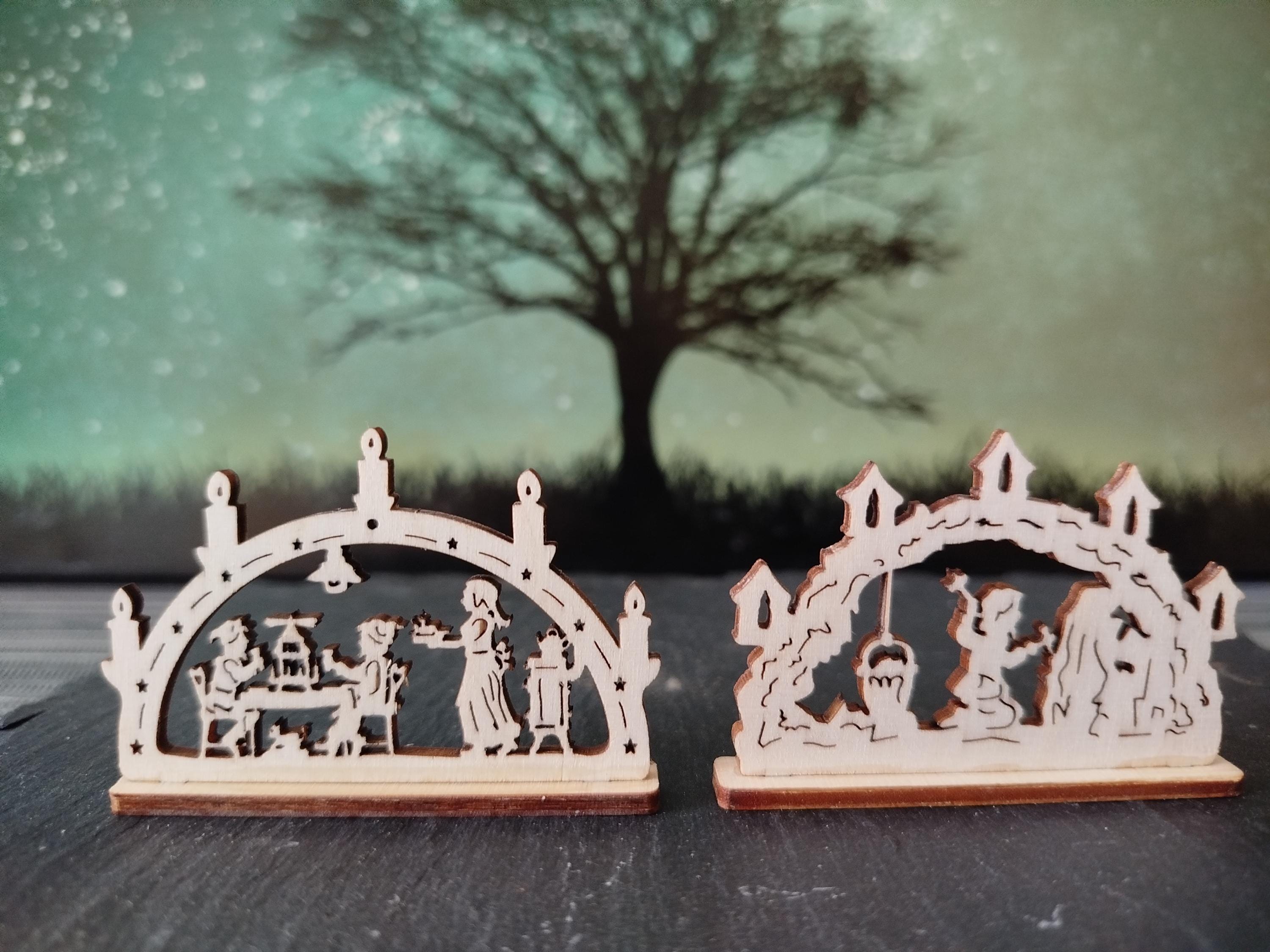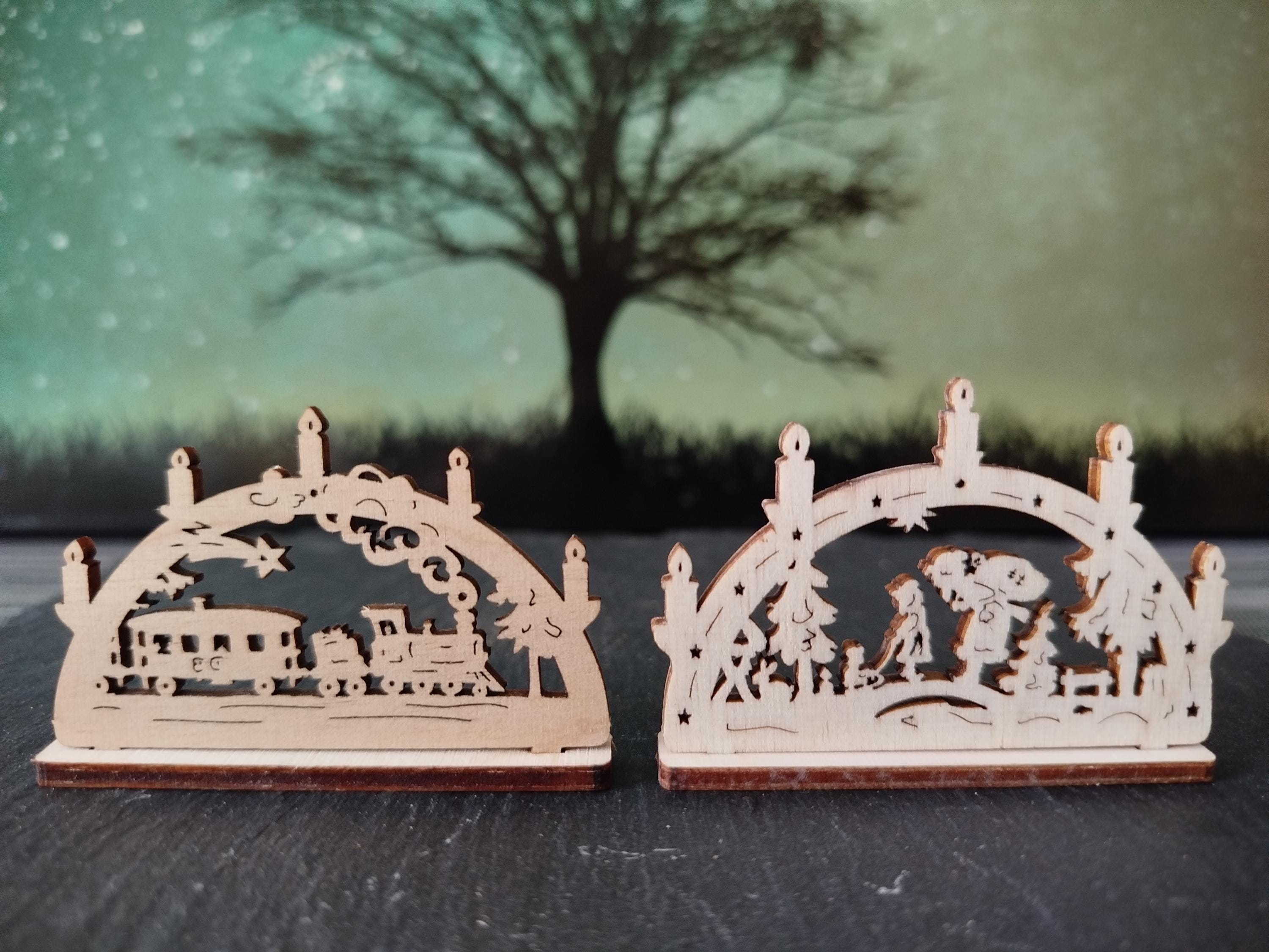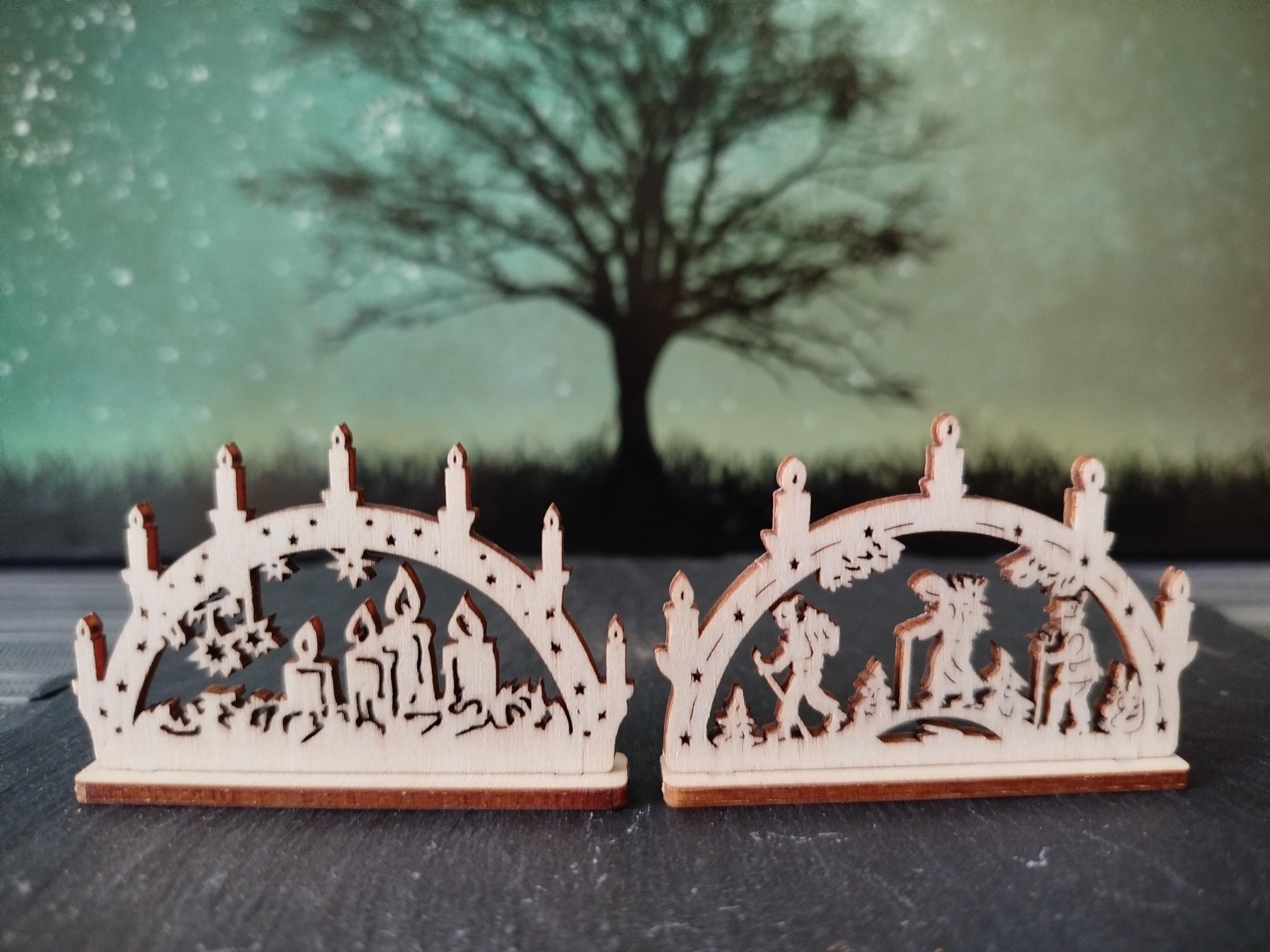 10 pieces mini candle arches various motifs (approx. 6 cm with base) wood / for Christmas, Advent, celebrations, gifts, mining, (without electricity) / unique