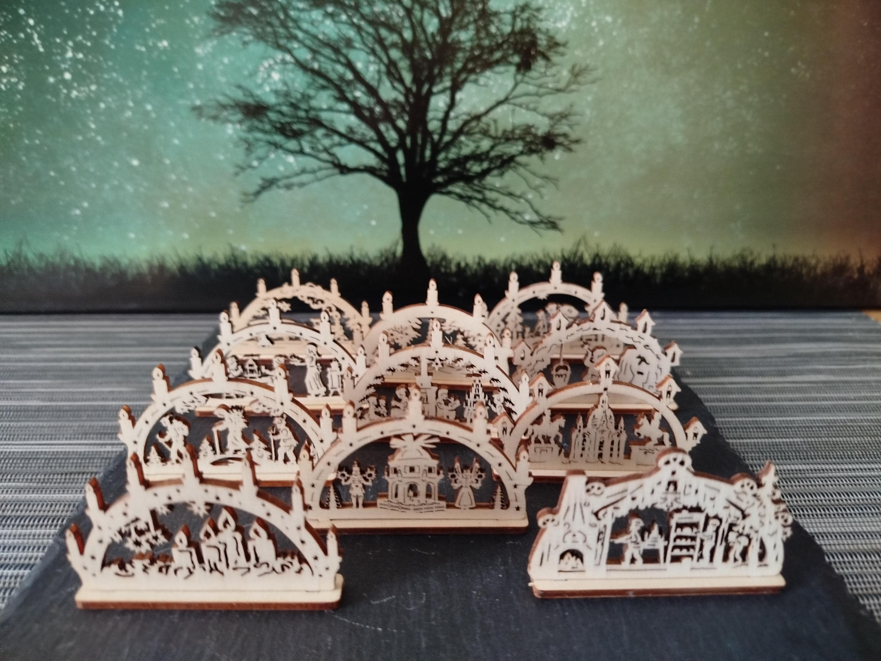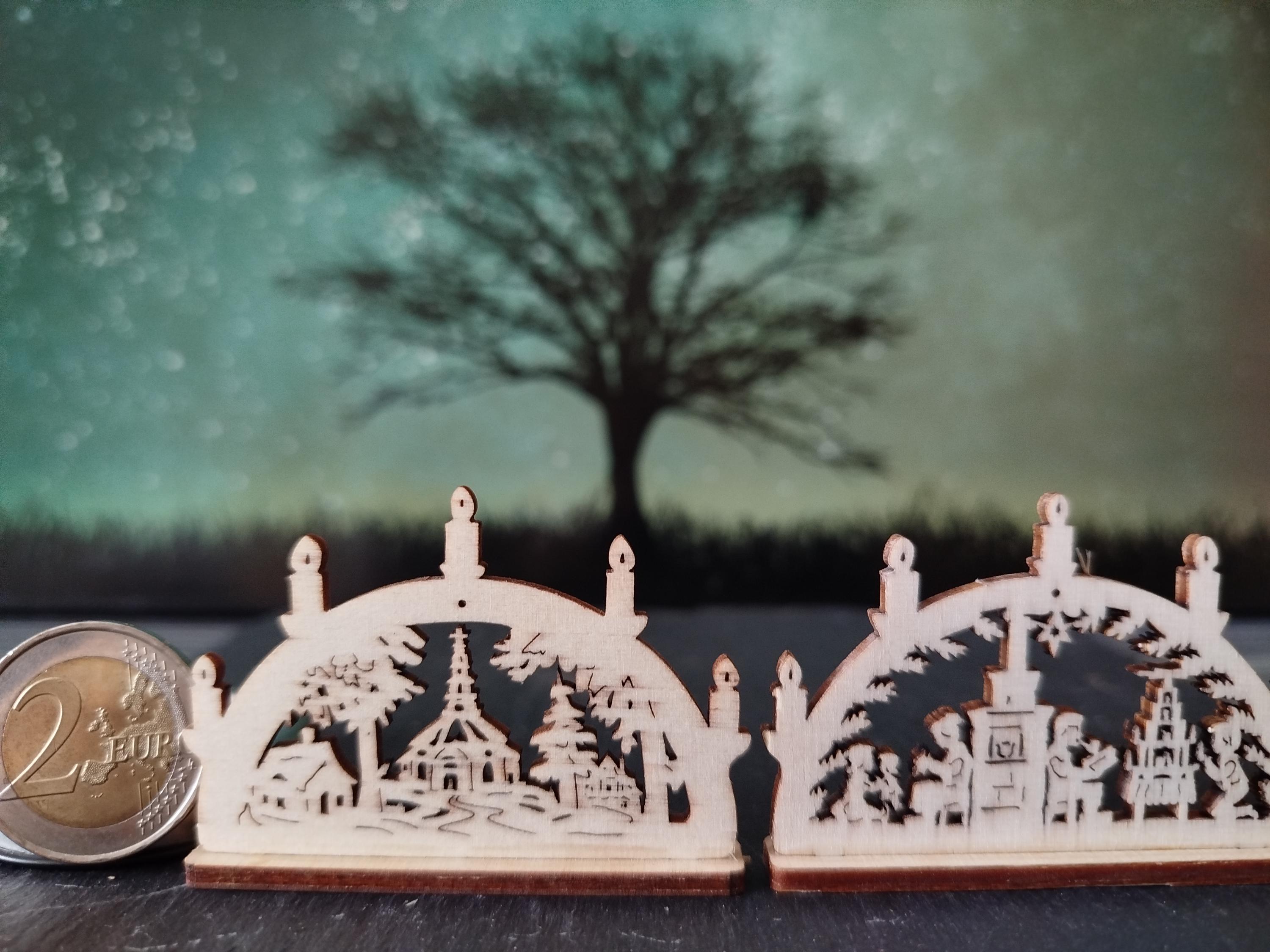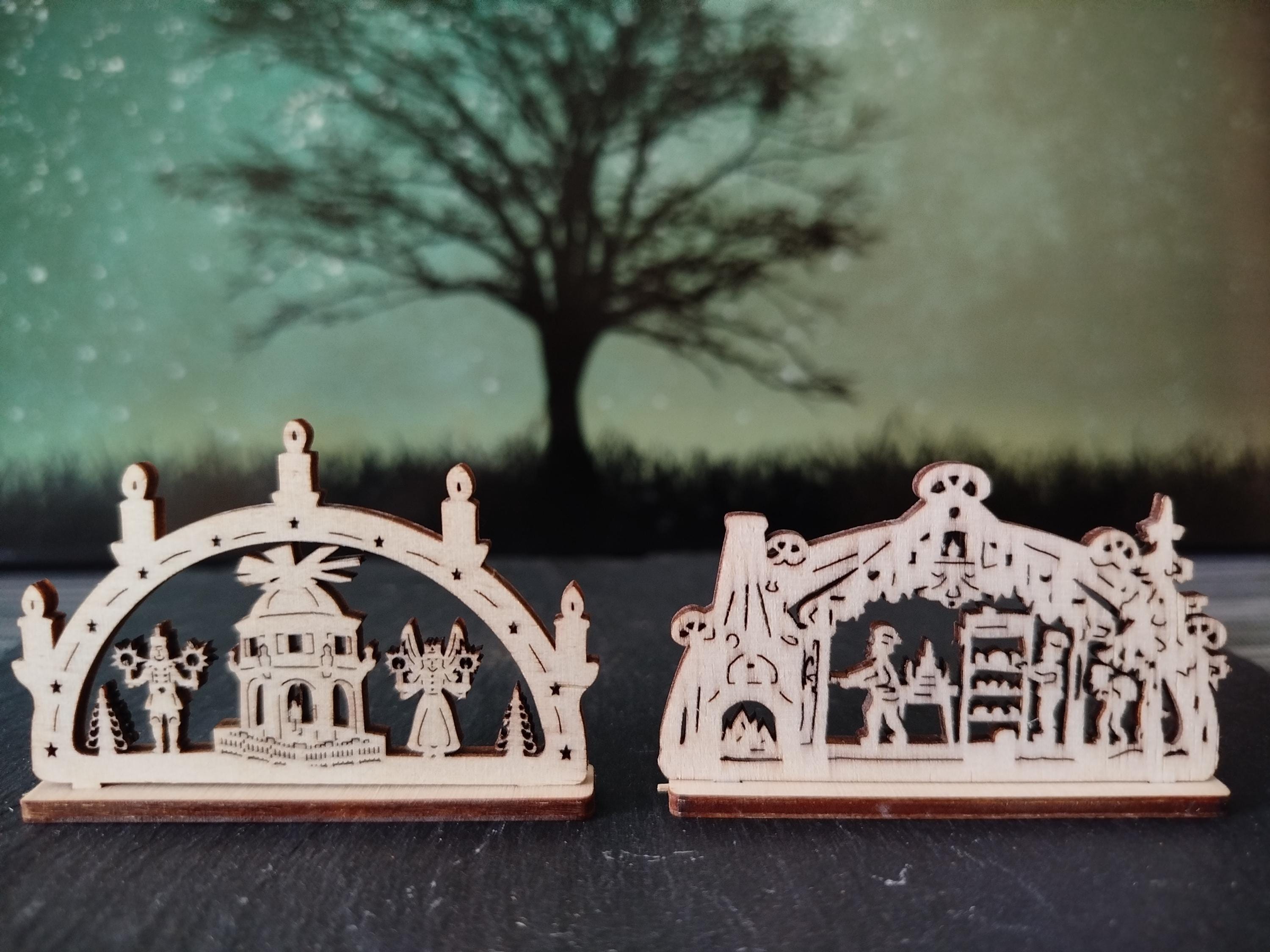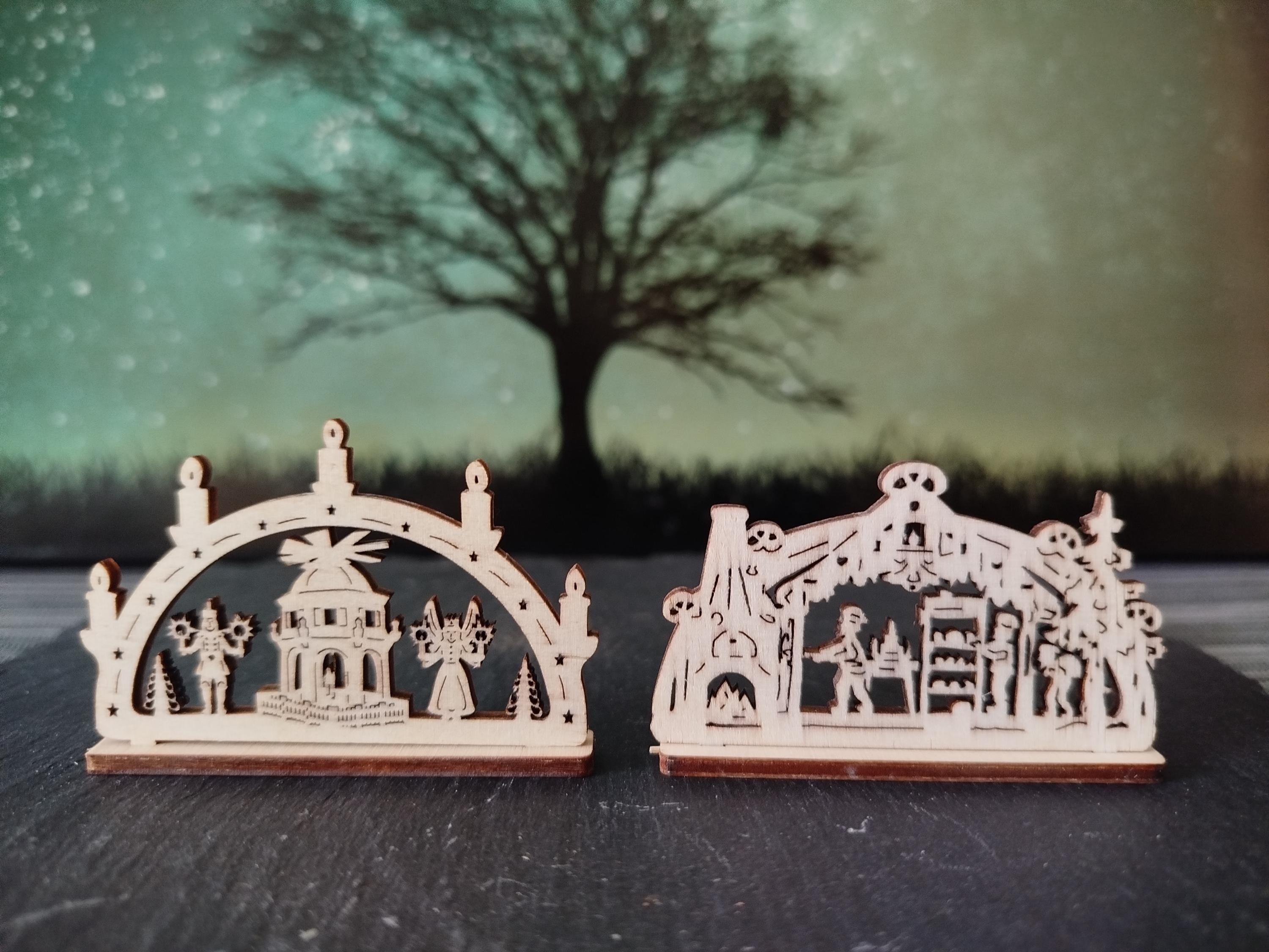 10 pieces mini candle arches various motifs (approx. 6 cm with base) wood / for Christmas, Advent, celebrations, gifts, mining, (without electricity) / unique