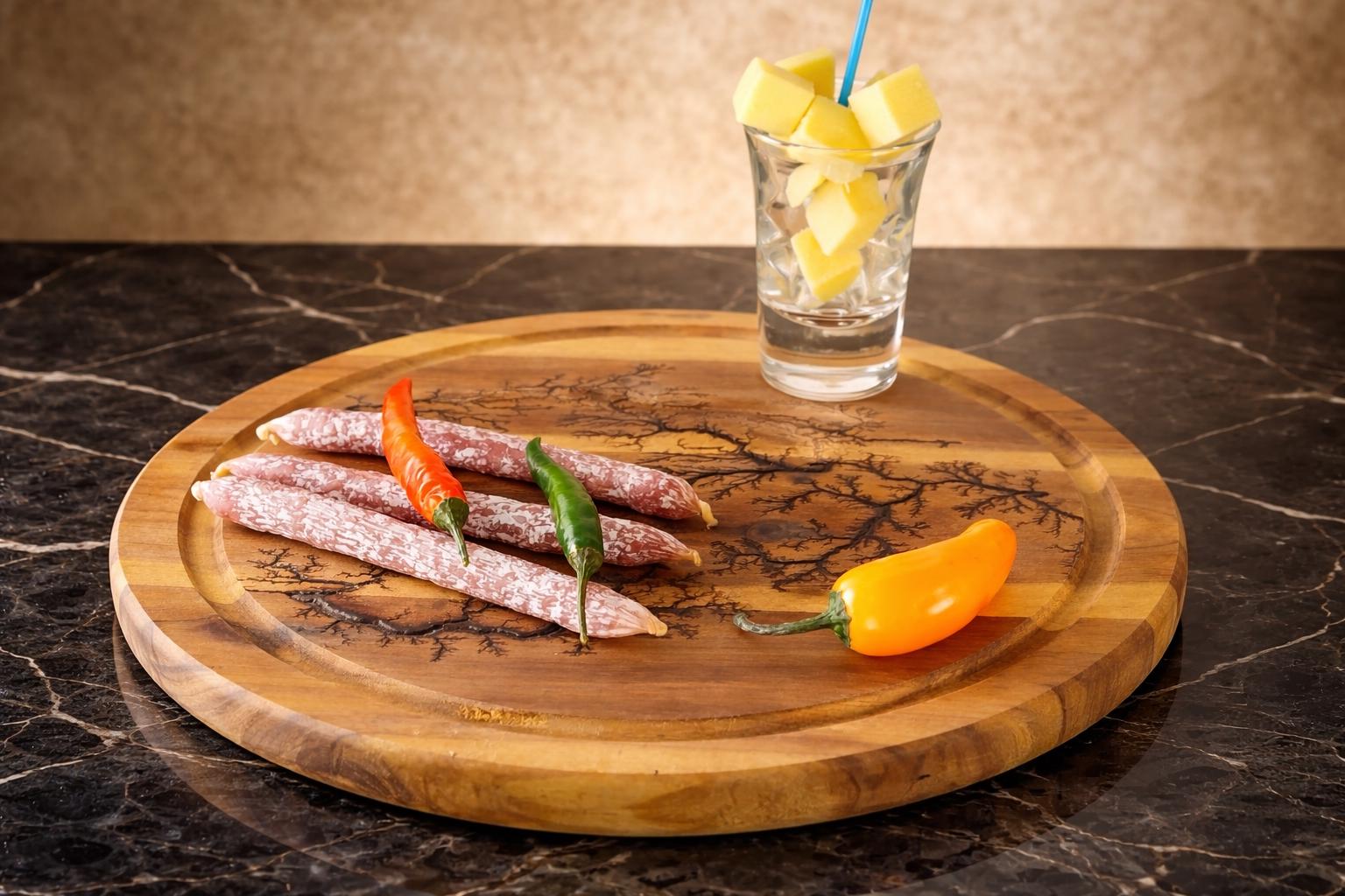 The decorative tray offered here is based on a board from Kesper, a German manufacturer of kitchen utensils. Their focus is on producing, among other things, cutting boards, serving boards, and bread and breakfast boards. The boards I work with are made of FSC-certified acacia wood, approved for use with food, and sealed by me three times with food-safe oil or varnish.