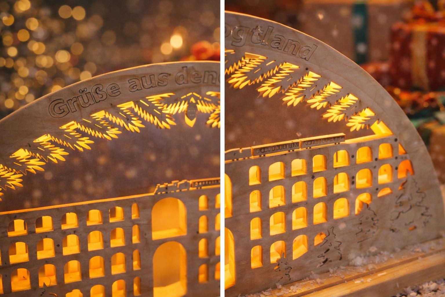 Göltzschtal Bridge Vogtland (large) Schwibbogen motif Göltzschtal Bridge/New / 62 x 30 cm high quality - produced in Saxony/Vogtland - in 3D optics - illuminated with LED strip Limited edition (5 pieces) The figures are glued on.