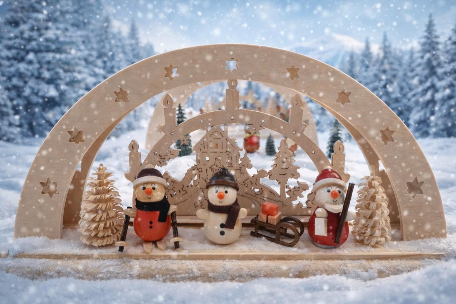 Candle arch/Winter snowmen-Santa Claus/for children's room/New/25 x 12 cm high quality - produced in Saxony/ 3D look illuminated with LED strip (1 piece)/Unique item