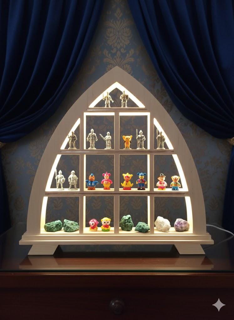Display case - candle arch/light arch - illuminated (large - approx. 40 cm x 37 cm) LED strip/for figures, minerals/cable with switch/Ore Mountains
