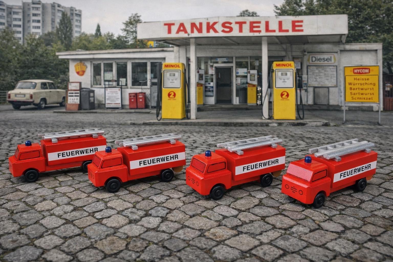 GDR toy cars from the Ore Mountains (new reproduction), approx. 7.5 cm, made from local wood and with safe paints, produced in Saxony/Ore Mountains