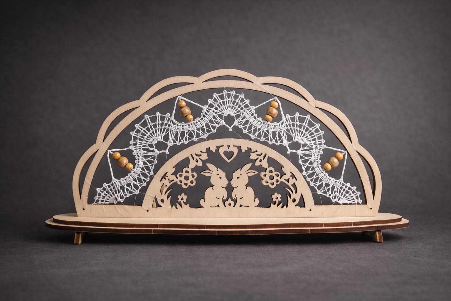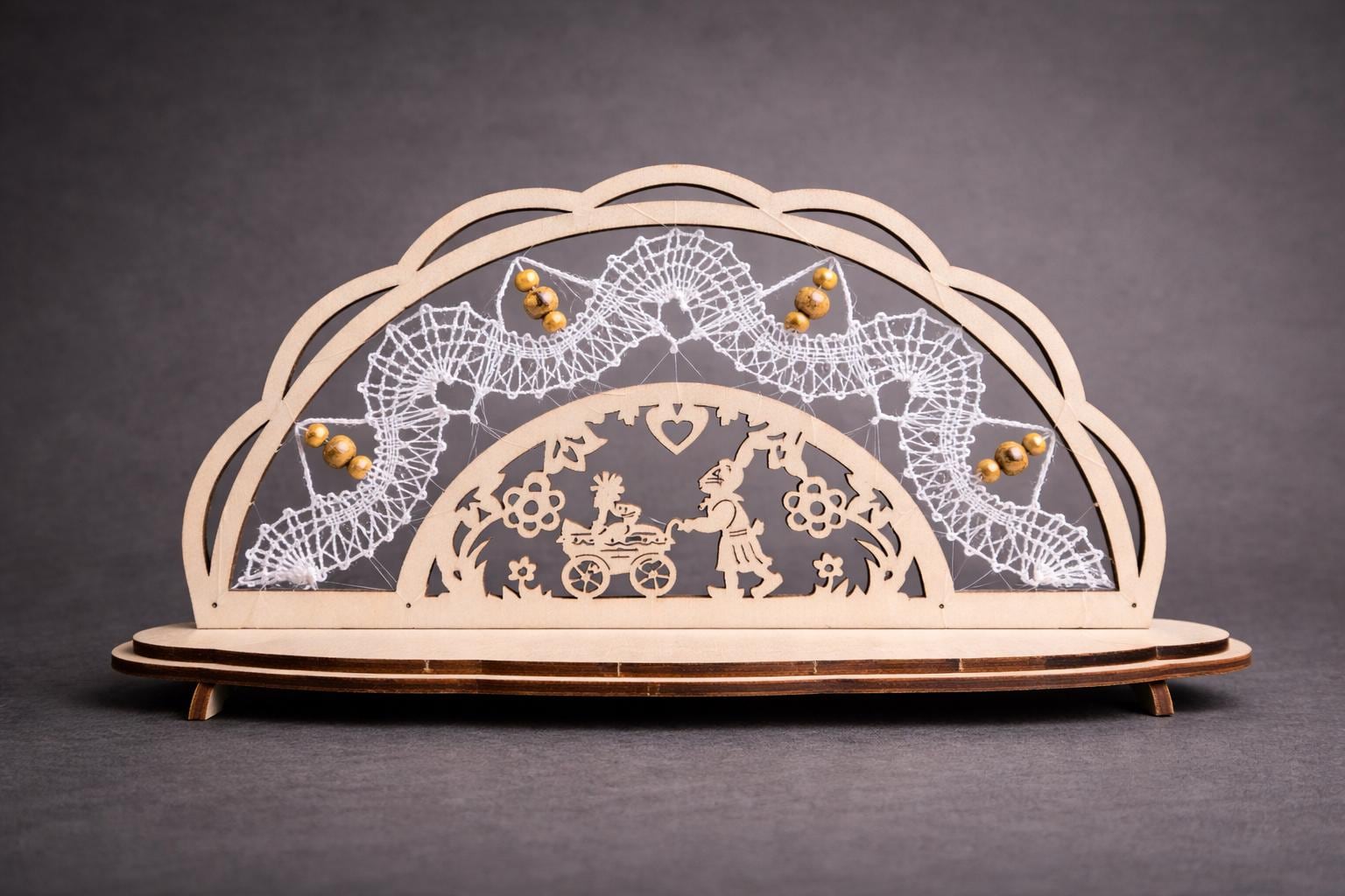 1 piece - Schwibbogen/Lichterbogen (small - approx. 20 cm x 10 cm) with bobbin lace inner frame / Unique - handmade item from the Ore Mountains